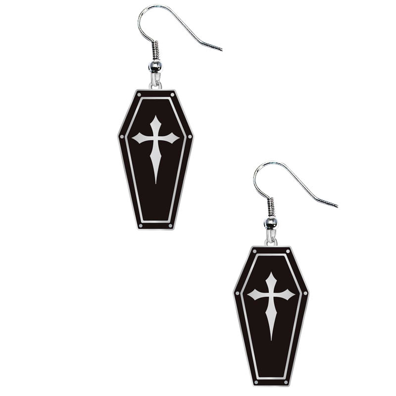 - Brincos góticos com caixões pendurados de acabamento impecável e design exclusivo