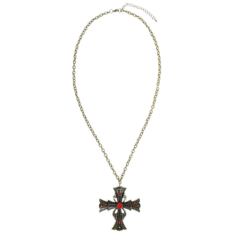 Colar cruz com rubi para disfarçar-se em festas de horror e Halloween | colar gótico com cruz e pedraria é o toque original perfeito para completar a sua fantasia medonha de uma forma surpreendente e colorida em qualquer evento assustador de disfarces