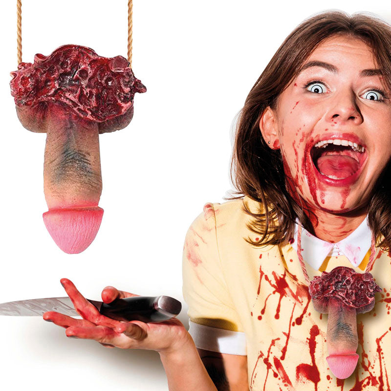 Colar com membro viril amputado para disfarçar-se em festas de horror e Halloween | colar com pénis cortado é o toque original perfeito para completar a sua fantasia medonha de uma forma surpreendente e colorida em qualquer evento assustador de disfarces