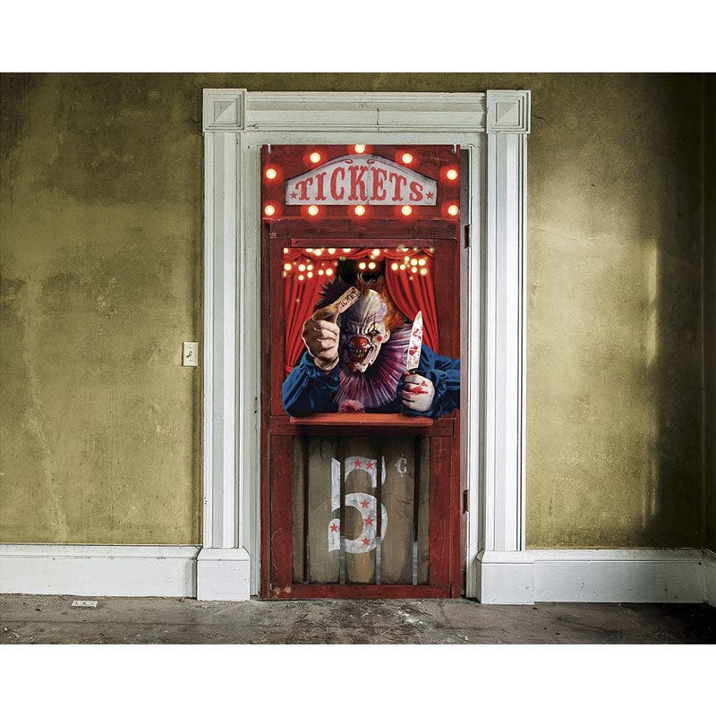 Ao utilizar Decoração de porta do Circo dos Horrores, poderá recriar uma atmosfera de terror a 100%, o que é, sem dúvida, indispensável para realizar uma decoração de Halloween espetacular