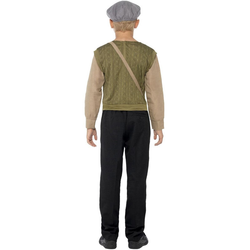 O fato inédito Evacuado da II Guerra Mundial para meninos inclui: Jersey com camisa, chapéu e bolsa | Este disfarce de Estudante refugiado para crianças está disponível em 4 tamanhos diferentes