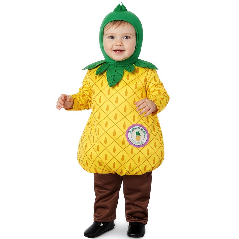 O fato inédito Ananás para bebés inclui: Capuz, t-shirt, calças | Este disfarce de Fruta de Verão para bebés está disponível em 3 tamanhos diferentes