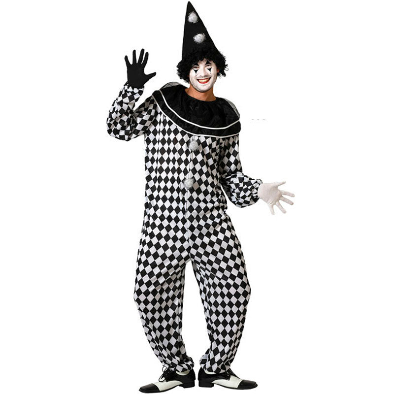 Fato de Arlequim preto e branco para homem