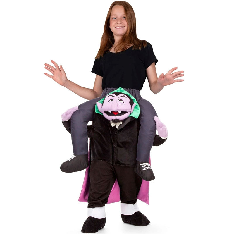 Traje original de Conde de Kontarr Rua Sésamo ride on que dará a sensação de andar a cavalo, uma maneira divertida de se vestir que inclui calças em forma de Conde de Kontarr e pernas penduradas.