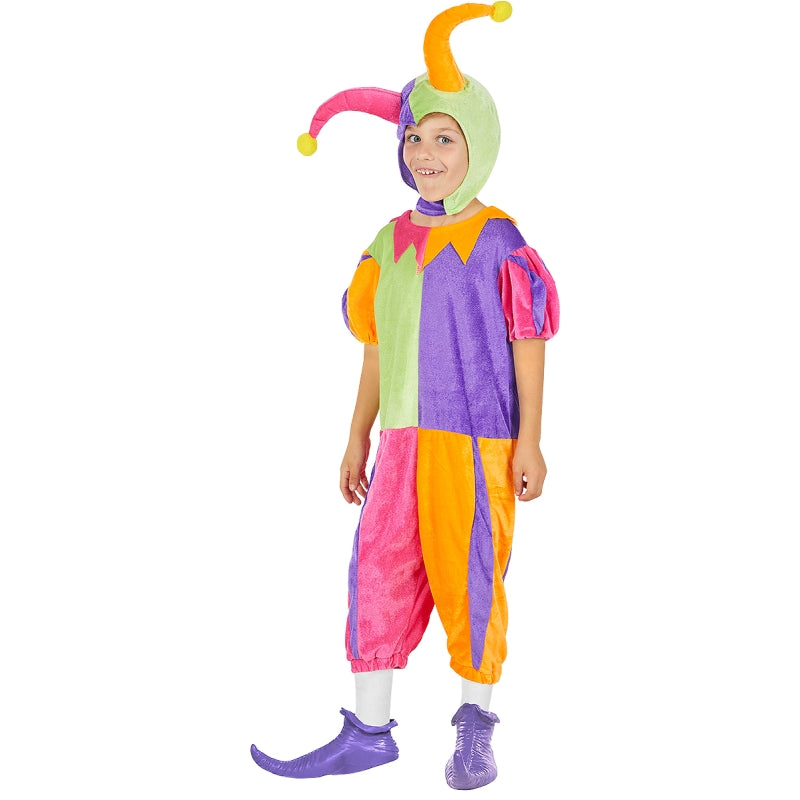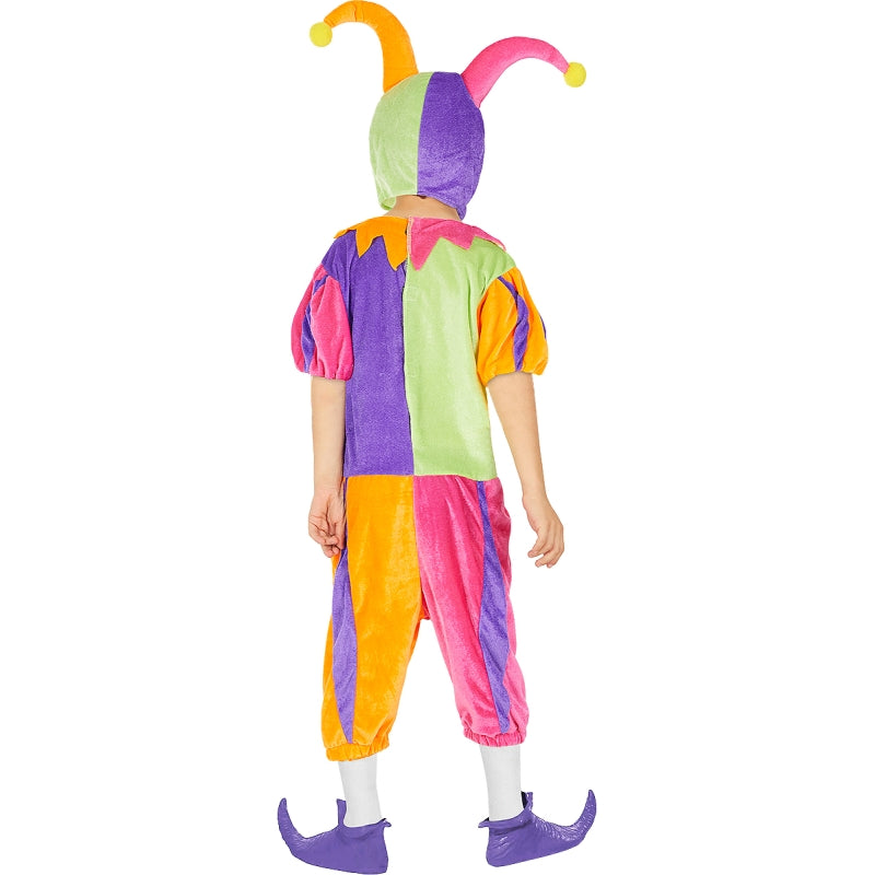 O fato exclusivo de Bobo da corte para crianças inclui: Macacão e gorro | Este fato infantil imitando Bobo da corte medieval está disponível em 4 tamanhos diferentes.