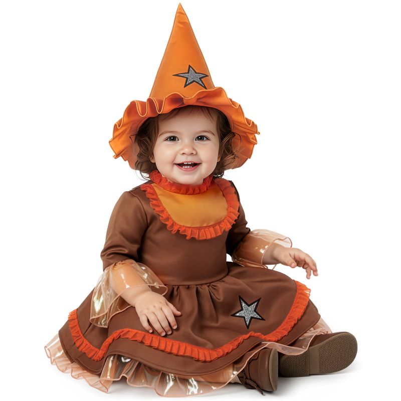 O fato Halloween Bruxinha Pixie para bebés inclui: Chapéu, vestido | Este disfarce assustador de Bruxa com Estrela para bebés está disponível em 3 tamanhos diferentes