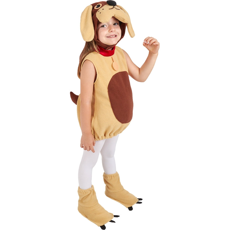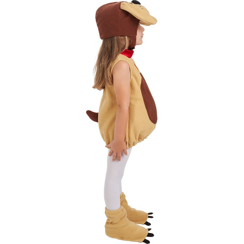 O fato exclusivo de Cachorrinho fofo para crianças inclui: Túnica, gorro e cobre-pés | Este fato infantil imitando Cachorrinho adorável está disponível em 3 tamanhos diferentes.