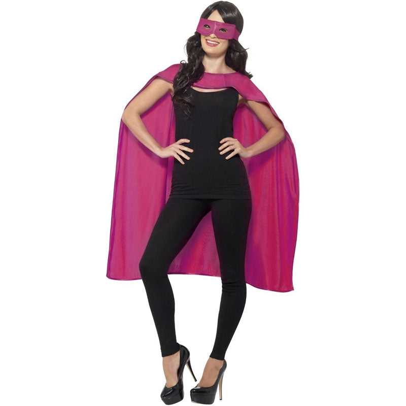 O fato inédito Capa rosa super-herói para adultos inclui: capa e máscara | Este disfarce de capa de super-herói com máscara para adultos está disponível em 1 tamanho