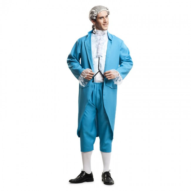 O traje masculino de Cavaleiro do Período Versallesco inclui: jaqueta, calça, colete e jabot.