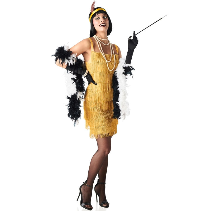 Fato de Charleston com franjas douradas para mulher