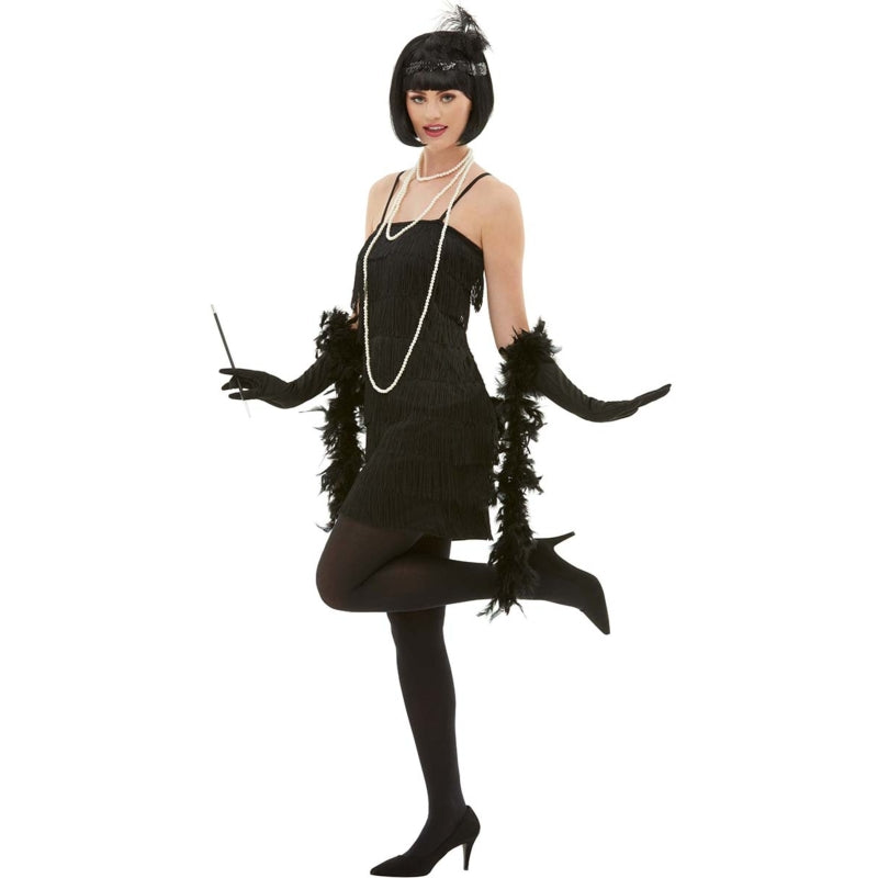 Este exclusivo disfarce de Charlestón para mulheres contém: Vestido, luvas compridas e faixa para a cabeça | Este traje de mulher para se transformar em cabaretista com franjas e ritmo dos anos vinte está disponível em 7 tamanhos diferentes