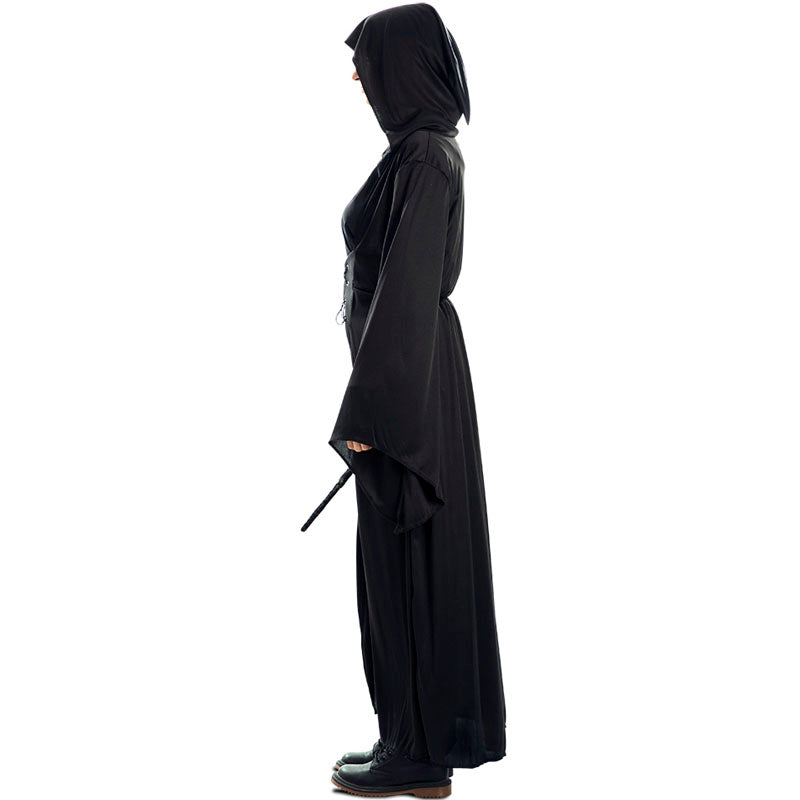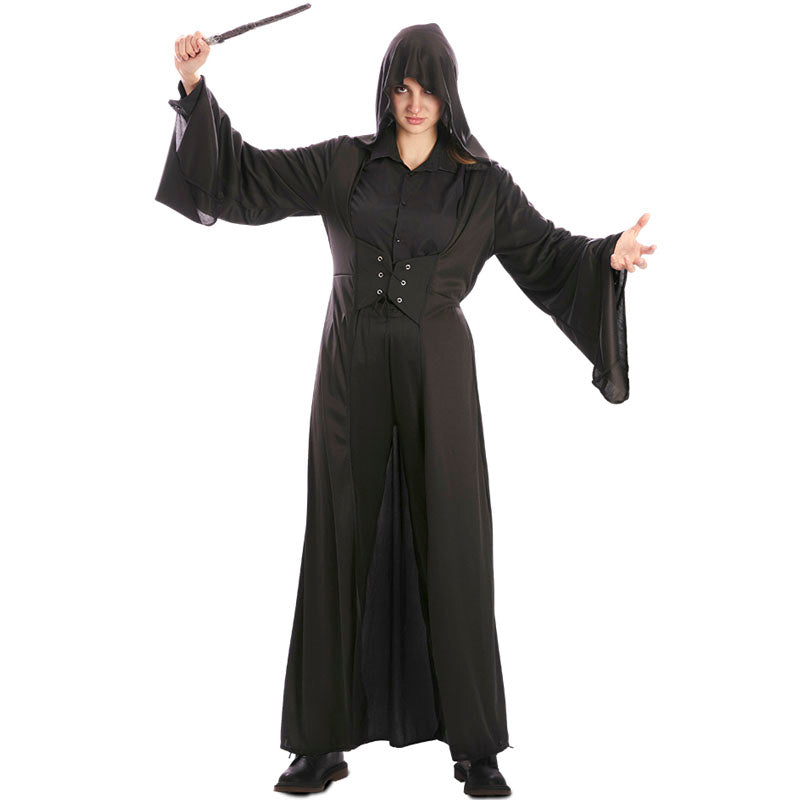 O fato de Halloween de Comensal da Morte para mulher inclui: túnica com capuz | Este traje assustador para te transformares numa seguidora de Voldemort está disponível em tamanho único