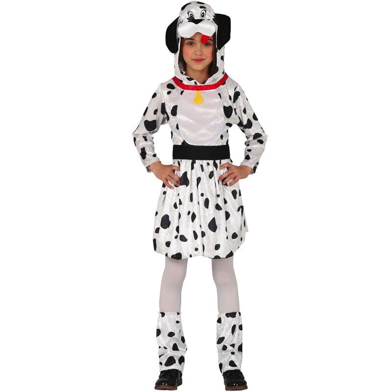 O fato original Dálmata para meninas inclui: Vestido com capuz e aquecedor de pernas| Este disfarce Cão dálmata para crianças está disponível em 3 tamanhos diferentes