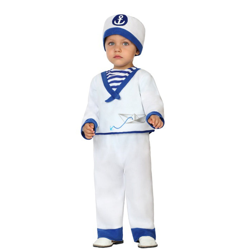 O fato de Marinheiro em branco para menino inclui: Camisa, calça e chapéu.