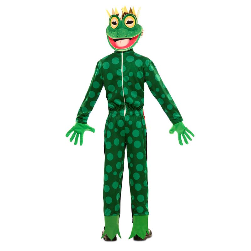 O fato inédito Duplo príncipe e rã para meninos inclui: Macacão, coroa com máscara, luvas | Este disfarce de Príncipe e rã encantada para crianças está disponível em 3 tamanhos diferentes