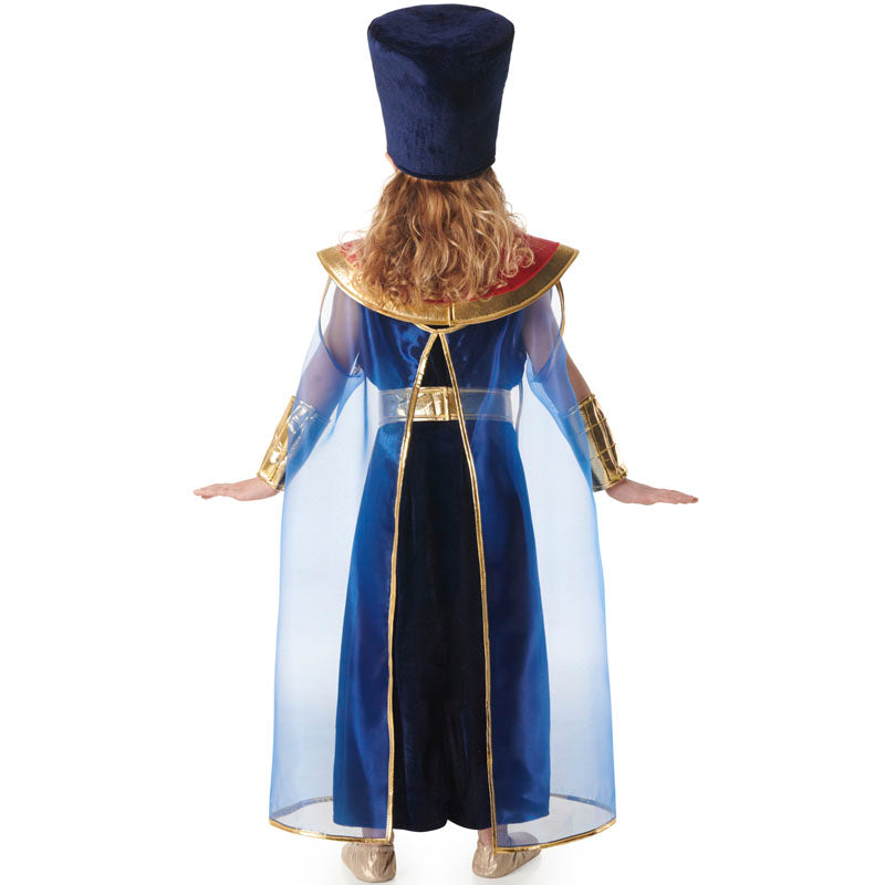 O fato original Egípcia em veludo azul para meninas inclui: chapéu, colar, túnica, capa, braceletes e cinto | Este disfarce Egípcia azul-real para crianças está disponível em 4 tamanhos diferentes