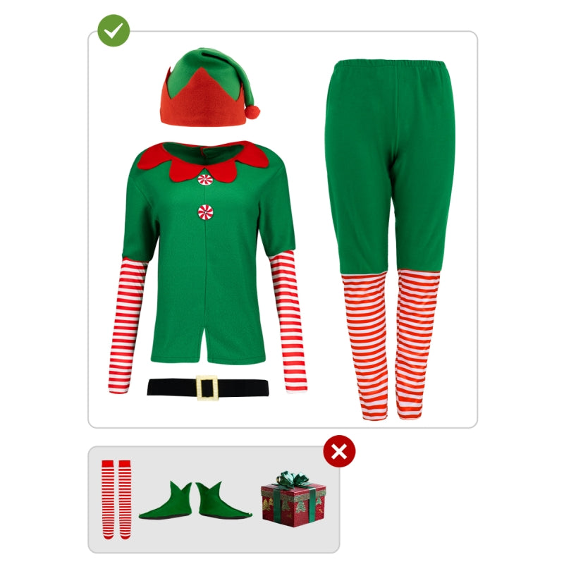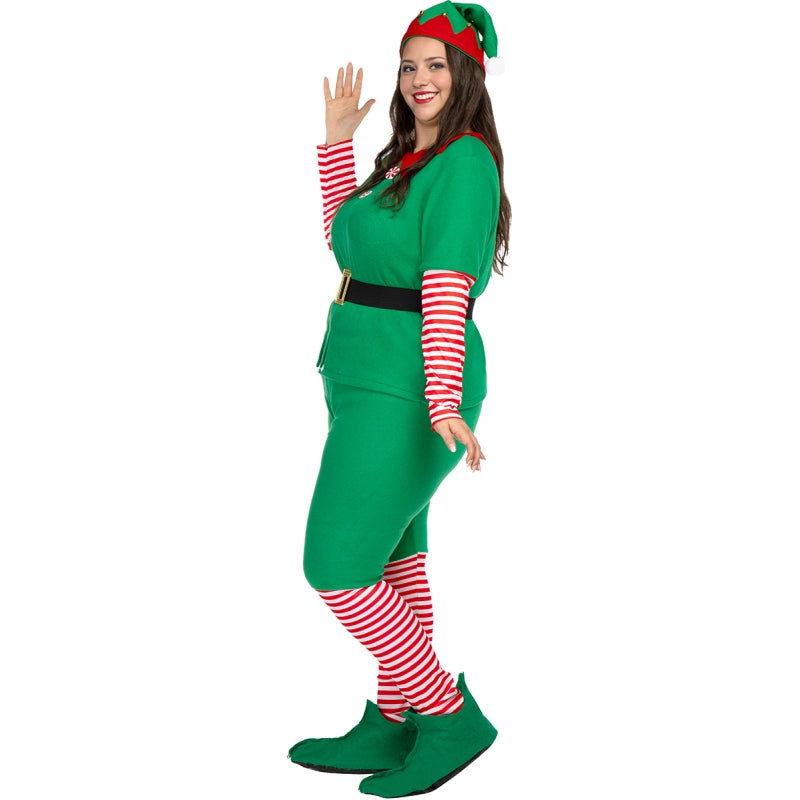 Este exclusivo disfarce de Elfa natalícia para mulheres contém: Camisola, calças, cinto e gorro | Este traje de mulher para se transformar em Elfa de Natal está disponível em 5 tamanhos diferentes