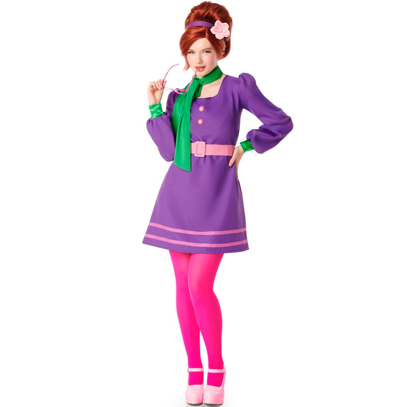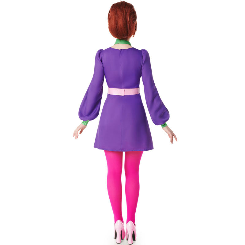 O fato original Espia estilo Austin Powers para mulheres inclui: diadema, lenço, vestido, cinto e meias | Este disfarce mulher agente secreta psicadélica está disponível em 4 tamanhos diferentes