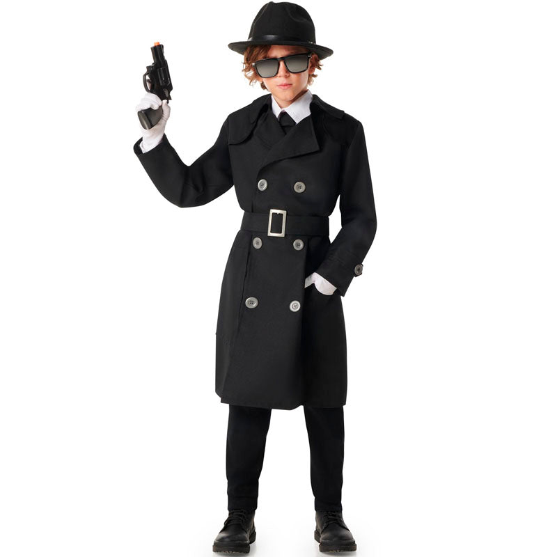 O fato inédito Espião secreto para meninos inclui: jaqueta, colar com camisa, gravata e cinto | Este disfarce de agente secreto para crianças está disponível em 4 tamanhos diferentes