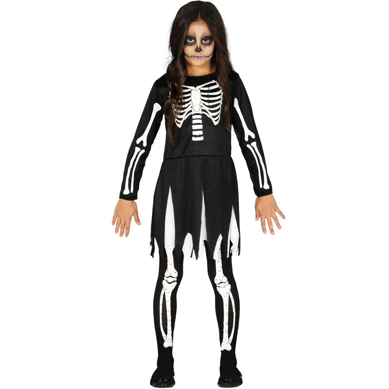 Transforme a sua filha numa assustadora Esqueleto das trevas num instante usando este novo fato de Halloween para raparigas. Não perca a oportunidade de a vestir como Esqueleto com vestido com este disfarce feminino de Halloween para crianças que contém vestido e está disponível em 4 tamanhos. Este novo fato Esqueleto negro para meninas é ideal para a transformar na rainha da noite dos mortos e faz parte do nosso extenso catálogo de fatos de Halloween para meninas.
