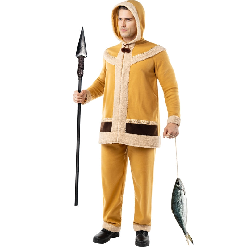 Este fato exclusivo de Esquimó do Pólo Norte para homens contém: Casaco e calças | Este disfarce de homem que imita Habitante ártico com traje tradicional de peles está disponível em 4 tamanhos diferentes e tenha em atenção que NÃO está incluído: Lança e cana
