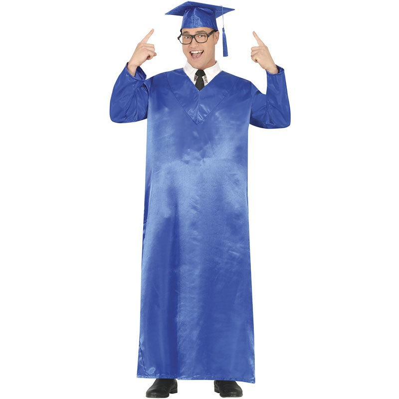 O fato inédito Estudante recém-formado para homens inclui: túnica e boné | Este disfarce de vestido de licenciado para adultos está disponível em 3 tamanhos diferentes