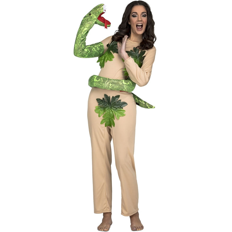 O traje adulto imitando Eva no Paraíso para mulheres inclui: macaco e cobra | Este traje de mulher Eva original está disponível em um tamanho