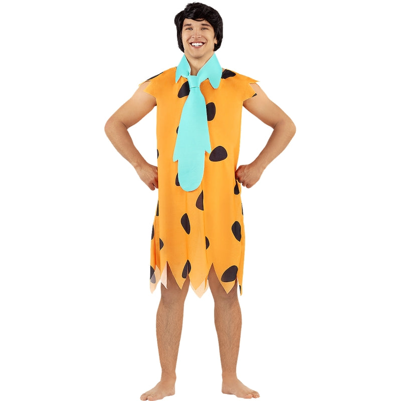 Este fato exclusivo de Fred Flintstone para homens contém: Túnica, peruca e gravata | Este disfarce de homem que imita Homem das cavernas bondoso da Idade da Pedra animada está disponível em 3 tamanhos diferentes e tenha em atenção que NÃO está incluído: Cobre-botas