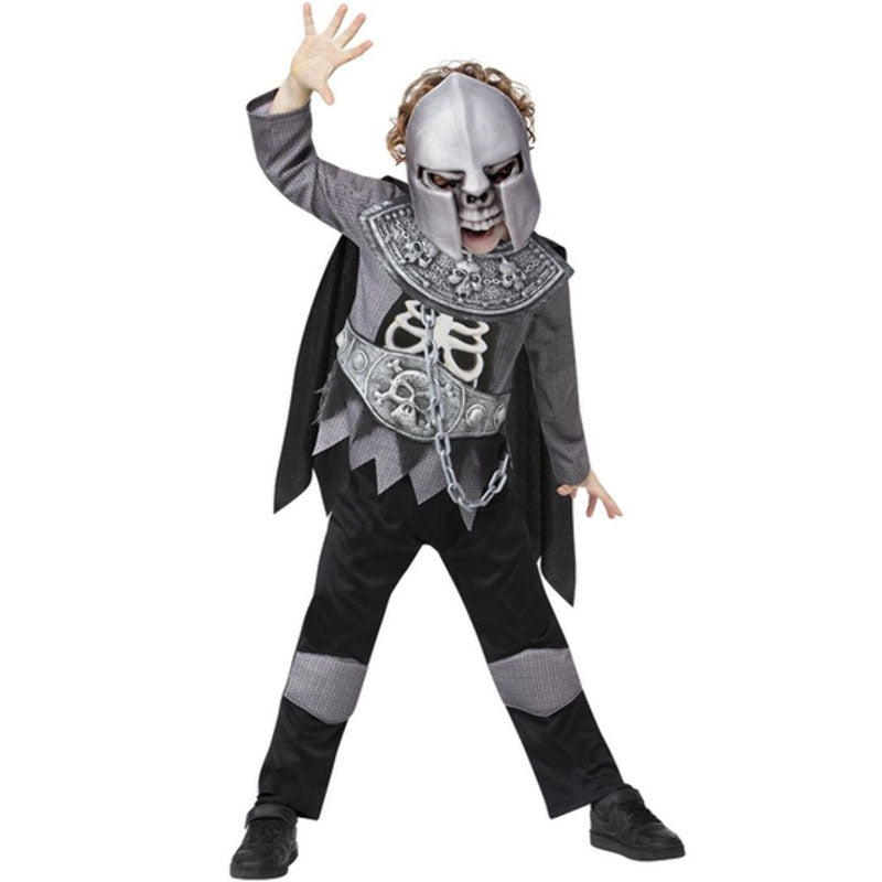 Transforma o teu pequenino num Guerreiro esqueleto aterrador graças a este novo disfarce de terror para crianças. Se o dia 31 de Outubro se aproxima e não tem ideias para as fantasias de Halloween então vestir o seu filho como esqueleto guerreiro de calabouço soa certamente aterradoramente bem. Este novo fato esqueleto medieval menino de Halloween contém camisa, calças, capa e máscara EVA e está disponível em 3 diferentes tamanhos, perfeito para espalhar o terror entre os seus amigos na sua próxima festa de horror, noite de medo ou trick-or-treating. Este disfarce Guerreiro esqueleto para rapazes torna-se parte dos melhores fatos de Halloween para meninos na nossa loja online. Compre esta original fantasia Guerreiro esqueleto para crianças para as transformar na noite mais escura do ano e fará o seu filho parecer assustador.