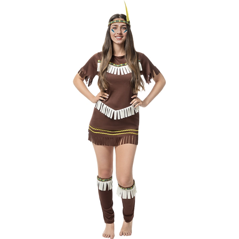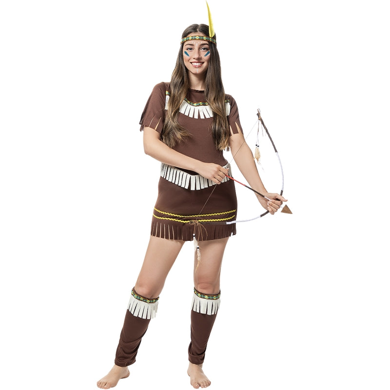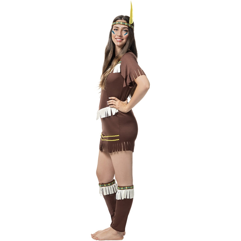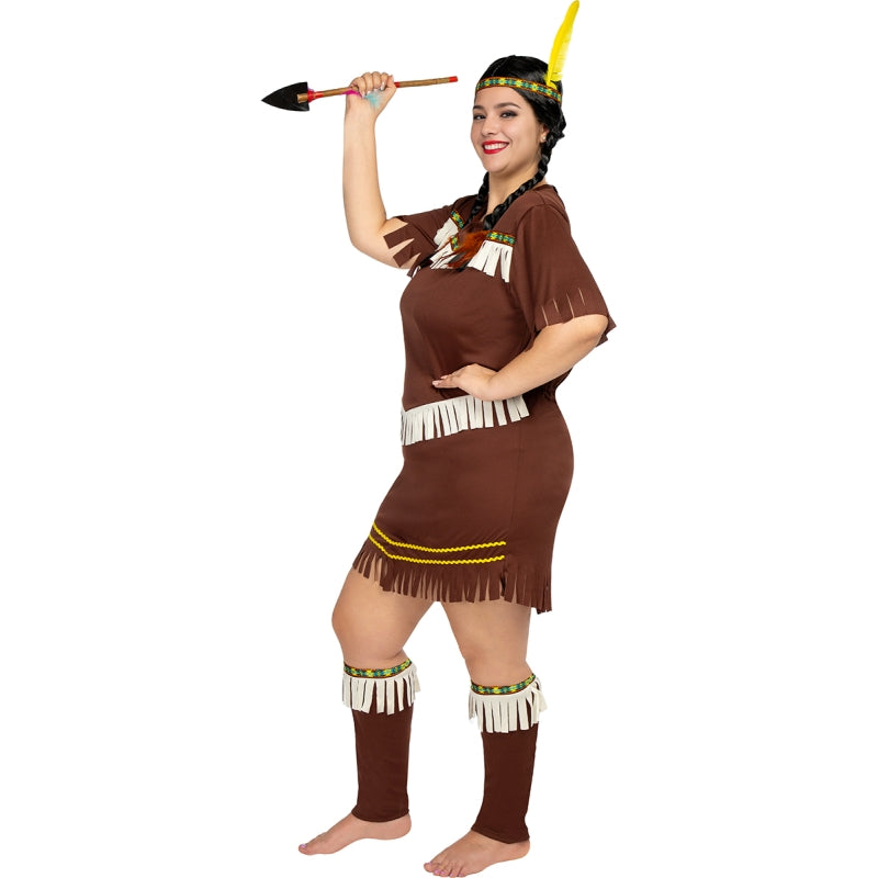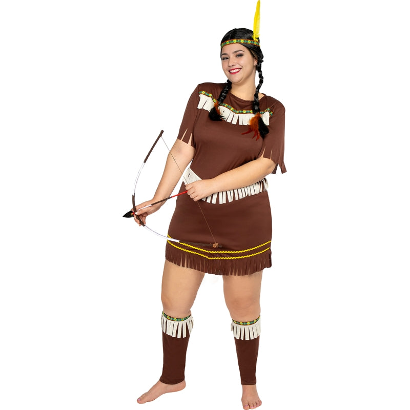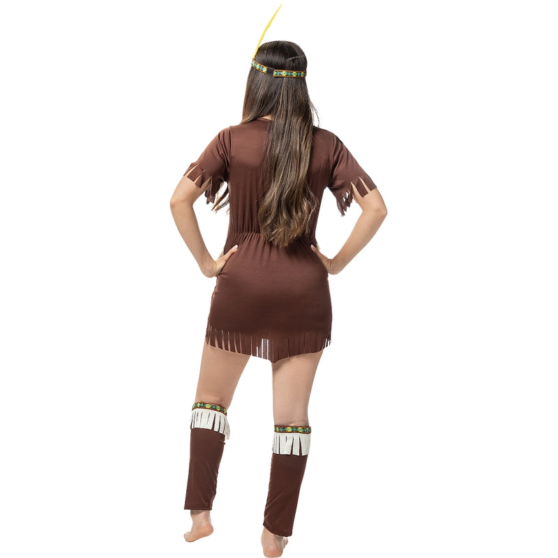 Este exclusivo disfarce de Índia Sexy para mulheres contém: Vestido, faixa para a cabeça com pena e caneleiras | Este traje de mulher para se transformar em figura tribal com ar selvagem e estilizado está disponível em 5 tamanhos diferentes