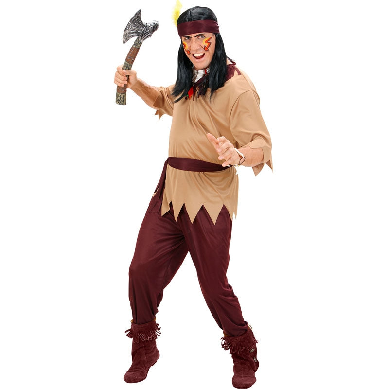 O fato inédito Índio típico para homens inclui: casaco, calças, cinto e fita para a cabeça | Este disfarce de Índio Ocidental Americano para adultos está disponível em 3 tamanhos diferentes