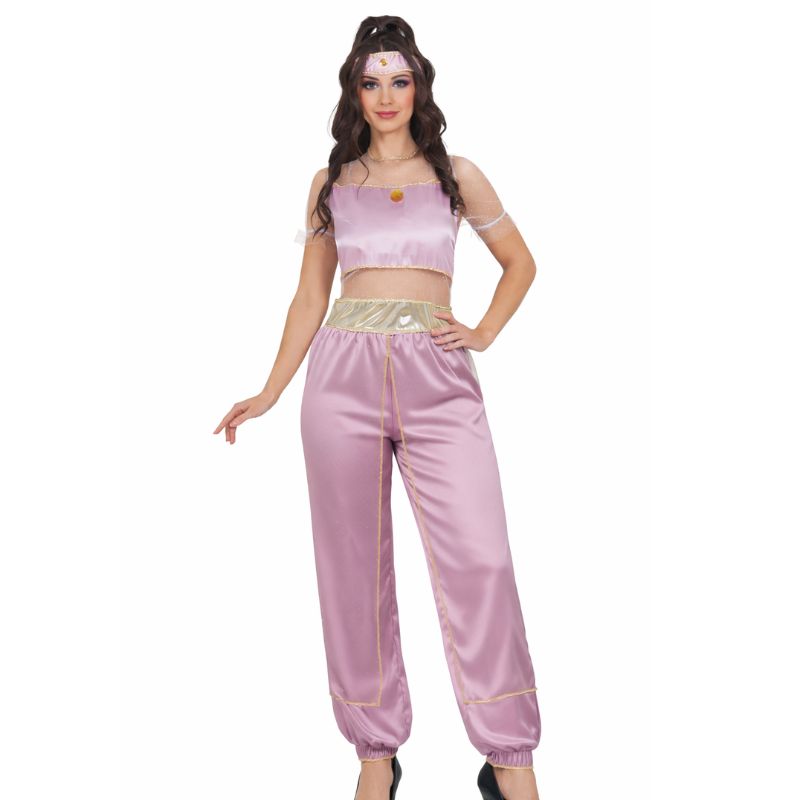 O fato original Jasmine Princesa do Deserto para mulheres inclui: Macacão e fita para a cabeça | Este disfarce mulher Princesa do deserto oriental está disponível em 3 tamanhos diferentes