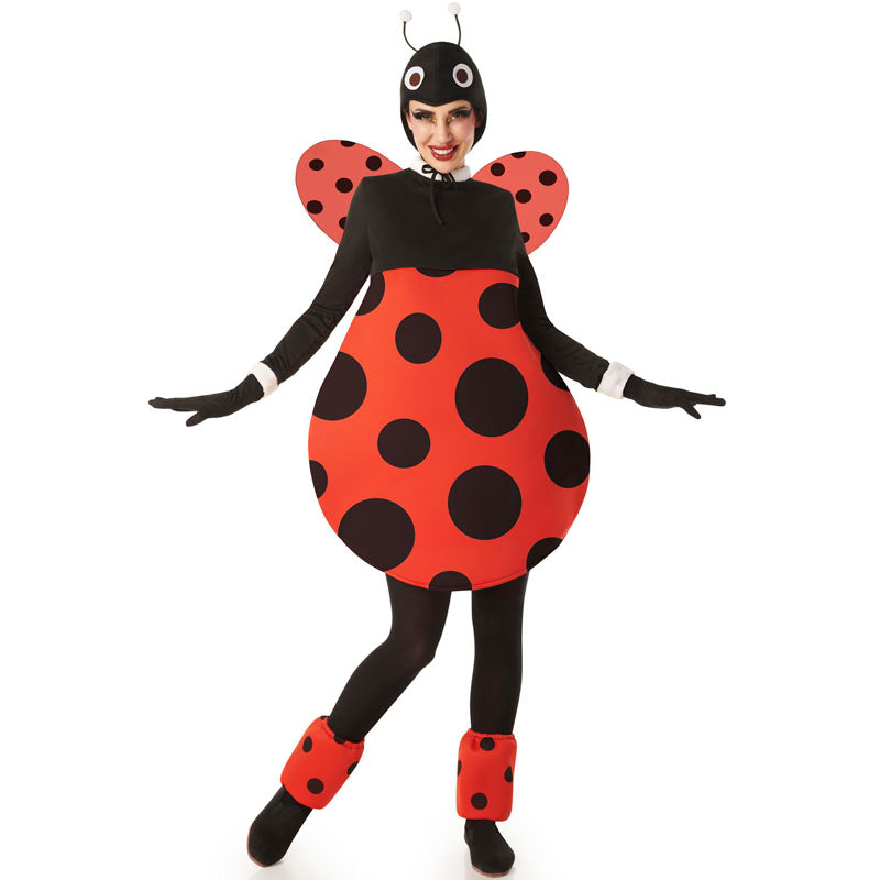 O fato original Joaninha rechonchuda para mulheres inclui: capuz, corpo, perneiras e asas | Este disfarce mulher joaninha gordinha está disponível em 4 tamanhos diferentes
