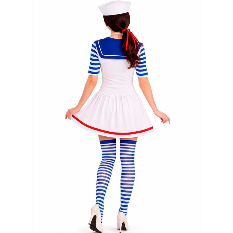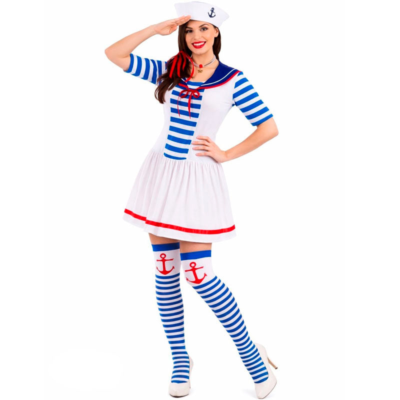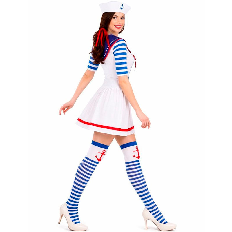 O traje adulto imitando uma marinheira com âncora para mulher inclui: Vestido e chapéu | Este fato de marinheira feminino está disponível em um tamanho.