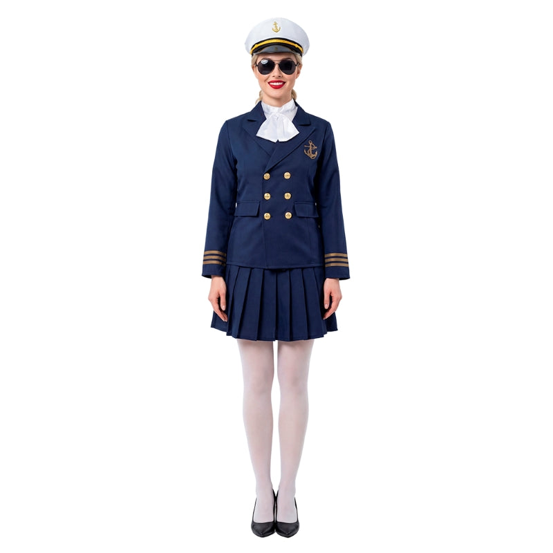 O fato original Marinheira Tradicional para mulheres inclui: Casaco, saia, lenço, boné | Este disfarce mulher Capitã Marinha está disponível em 3 tamanhos diferentes