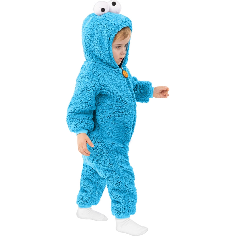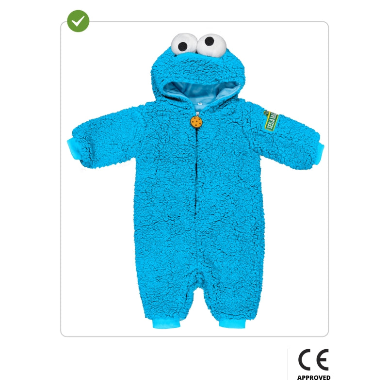 Disfarce oficial do Monstro das Bolachas para bebé com fato com capuz. Disponível em 3 tamanhos. Macio, divertido e perfeito para os mais pequenos.
