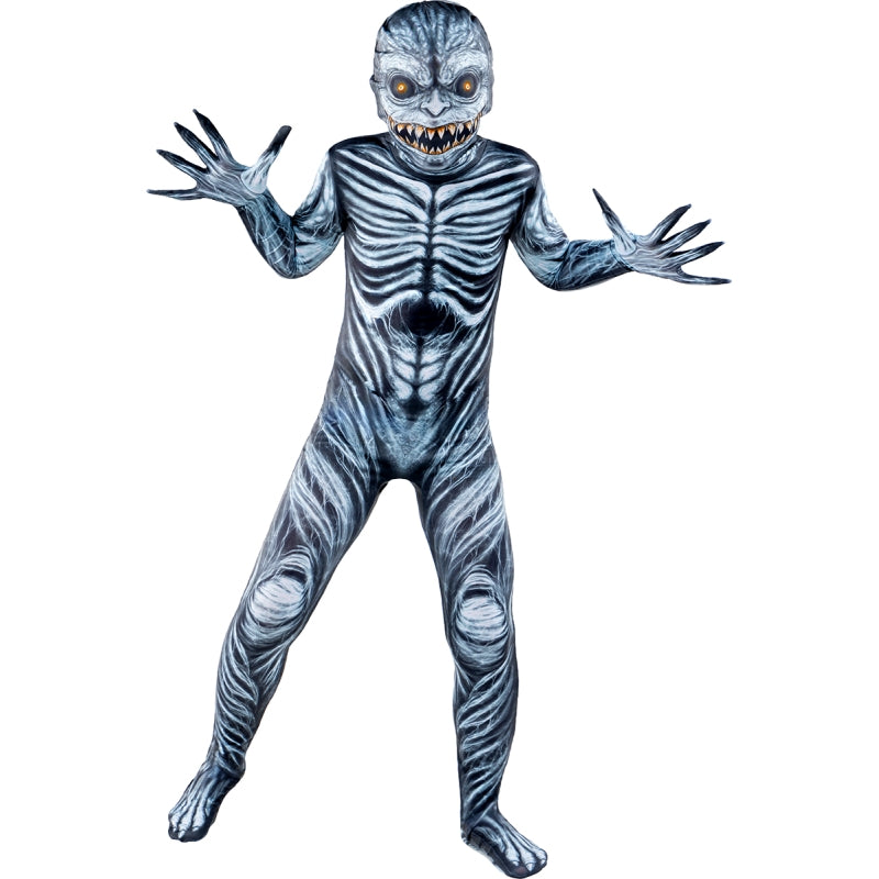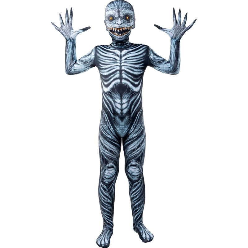Disfarce de Monstro de segunda pele para criança com fato completo e abertura nas costas. Disponível em 3 tamanhos. Divertido, flexível e confortável para brincar ou mascarar-se.