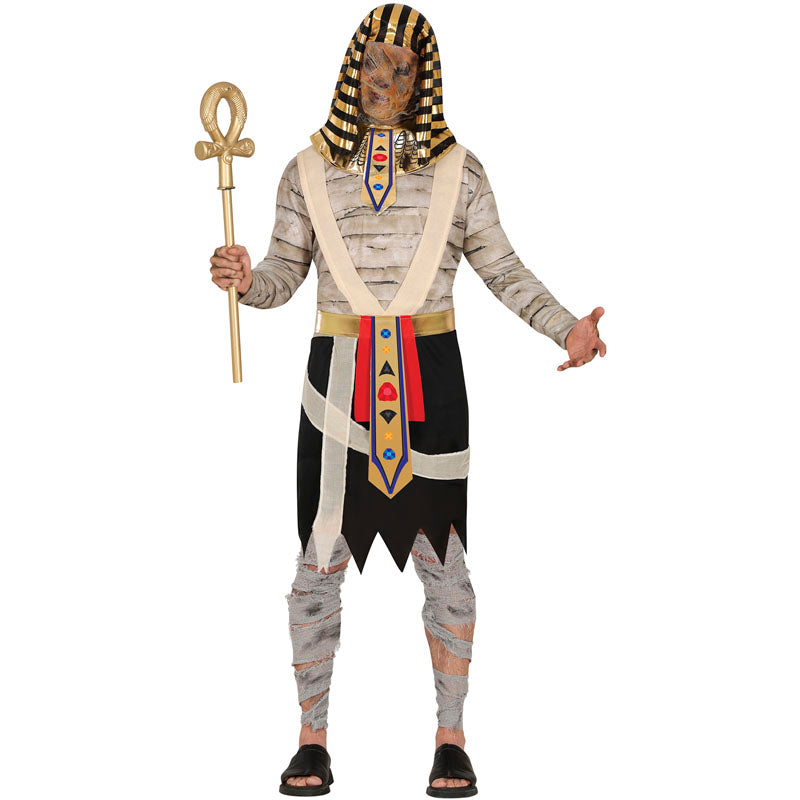 O fato Halloween Múmia Egípcia para homens inclui: túnica, cinto, toucado e colarinho | Este disfarce assustador de Múmia do rei Ramsés para adultos está disponível em 2 tamanhos diferentes