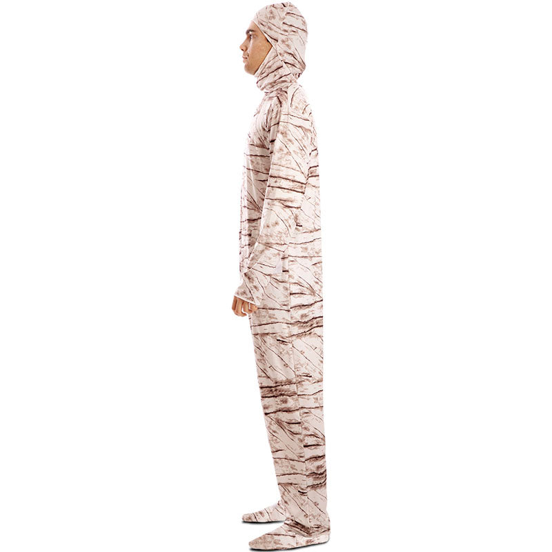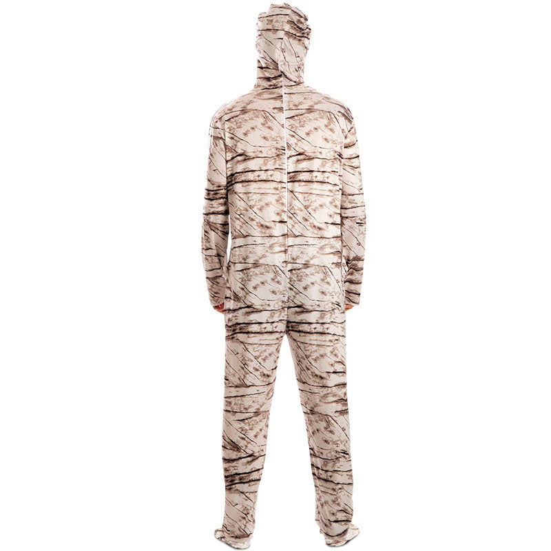 O fato de Halloween de múmia para homem inclui: macacão com capuz | Disponível em 3 tamanhos. Ideal para um look egípcio aterrador.