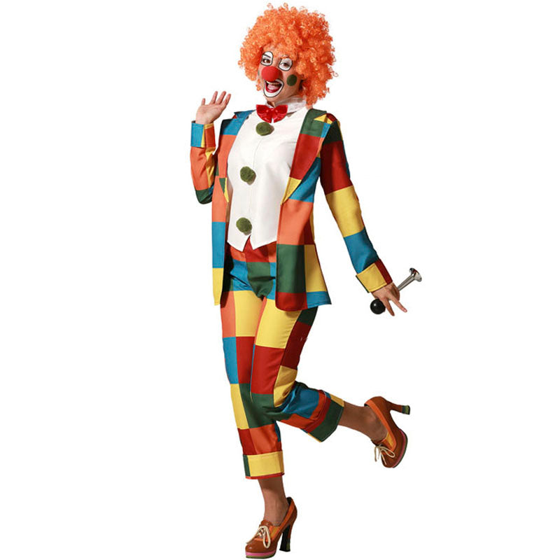 O fato original Palhaça com casaco para mulheres inclui: colar, jaqueta e calça. Não inclui: peruca, nariz e corneta. | Este disfarce mulher Palhaça aos quadrados está disponível em 4 tamanhos diferentes