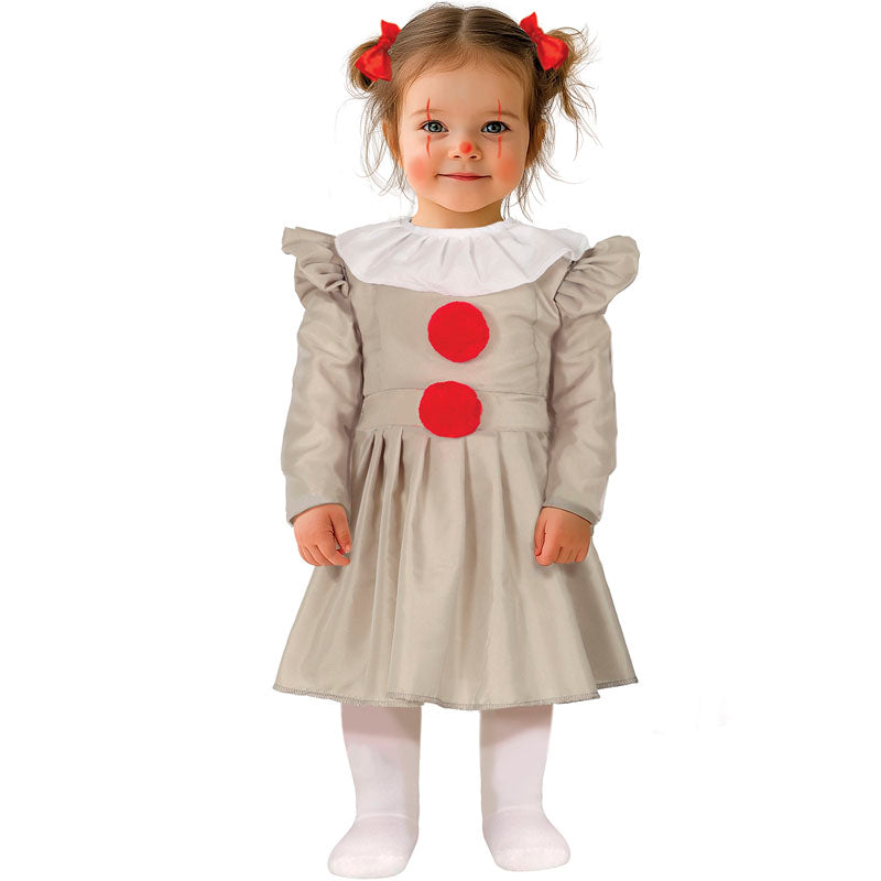 O fato Halloween Palhaça louca para bebés inclui: vestido e gola | Este disfarce assustador de Palhaça maléfica para bebés está disponível em 2 tamanhos diferentes