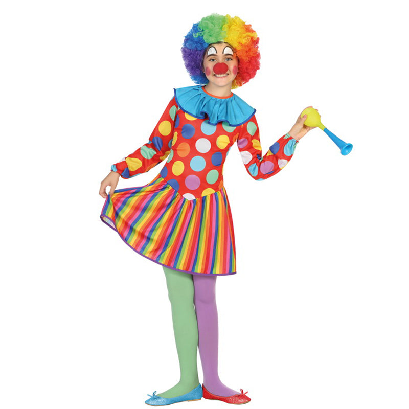 O traje de Palhaça multicolorido para menina inclui: Vestido e gola.
