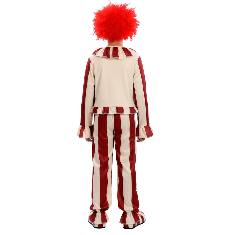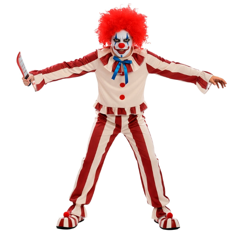 - Macacão com design de palhaço assassino de listras vermelhas e brancas