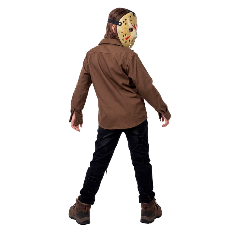 O fato Halloween Psicopata Assassino Jason para meninos inclui: Camisa com falsa t-shirt | Este disfarce assustador para crianças a imitar Jason Voorhees de Sexta-feira 13 está disponível em 4 tamanhos diferentes