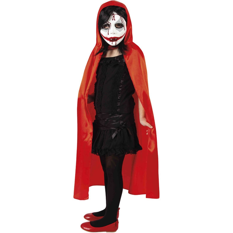 El disfraz Halloween infantil Sanguinaria encapuchada para niñas incluye: capa con capucha y máscara | Este traje niña Sanguinaria encapuchada está disponible en 2 tallas distintas