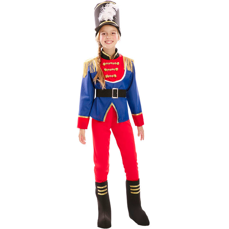 O fato original Soldadinho Quebra-Nozes para meninas inclui: casaco, calças, chapéu, cinto e cobre-botas | Este disfarce Quebra-Nozes de brinquedo para crianças está disponível em 4 tamanhos diferentes