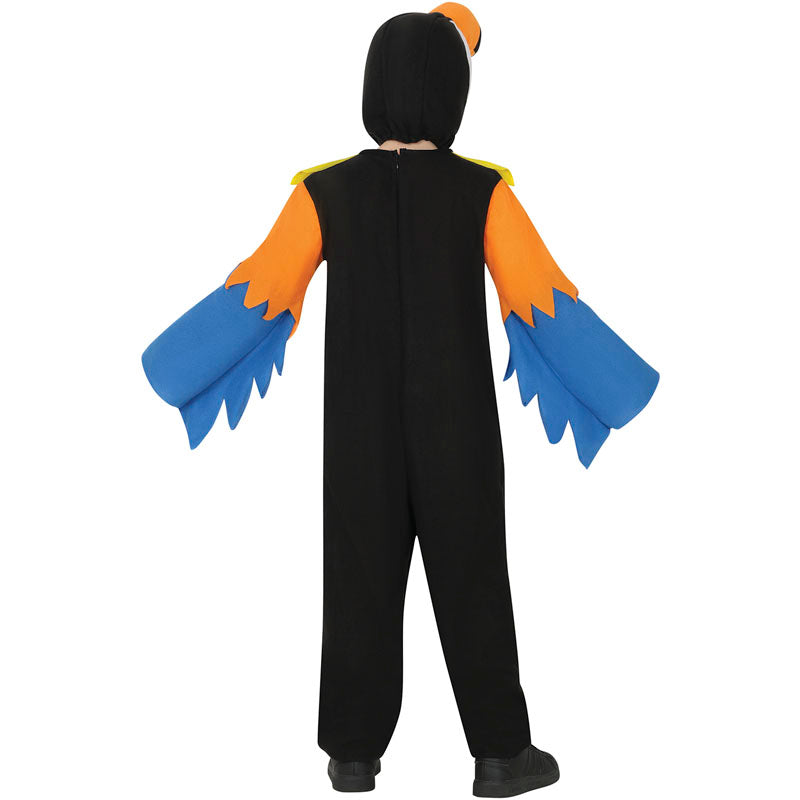 A fantasia original de Tucano para meninos e meninas inclui: macacão e capuz | Este traje infantil imitando Tucano exótico está disponível em 3 tamanhos diferentes