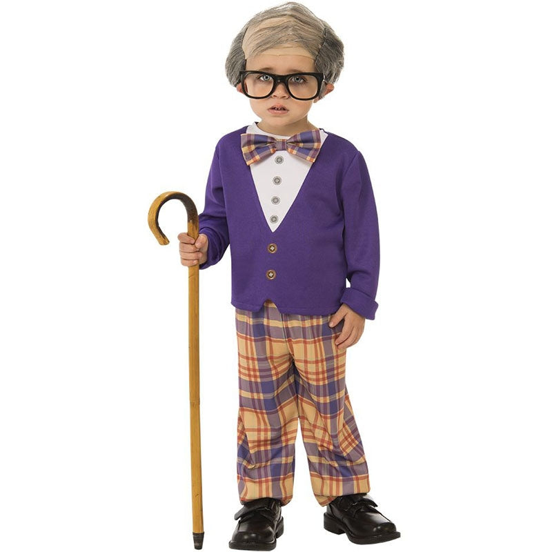 O fato inédito Velho para meninos inclui: camisa com laço, calças e peruca | Este disfarce de pequeno homem velho para crianças está disponível em 2 tamanhos diferentes