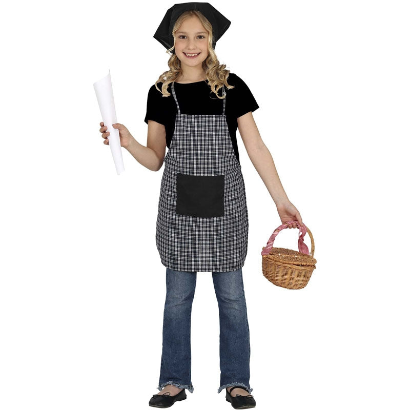 O fato de Natal vendedora de castanha axadrezada para meninas inclui: avental e lenço de pescoço | Este disfarce castanheira para crianças está disponível em 1 tamanhos diferentes e é perfeito para o Natal