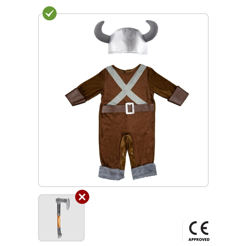 Disfarce de Viking Selvagem para bebé com fato e gorro. Disponível em 3 tamanhos. Sem arma. Macio, quente e divertido para os mais pequenos.